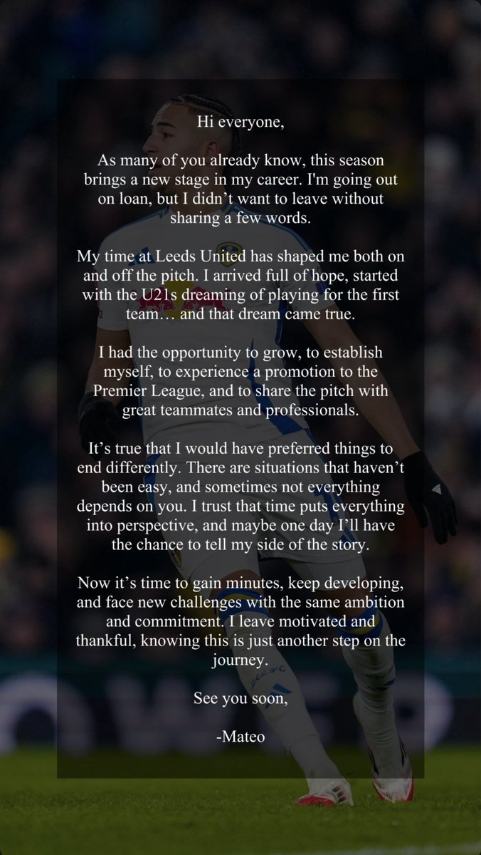 Han får enten 'ta en Gnonto' eller trene med U21-laget fremover. Leeds vil ikke selge (om det ikke kommer et utopisk tilbud) men heller låne ham ut slik at han (evt) kan gjøre seg mer attraktiv om en sesong.. - slik virker i alle fall stoda.