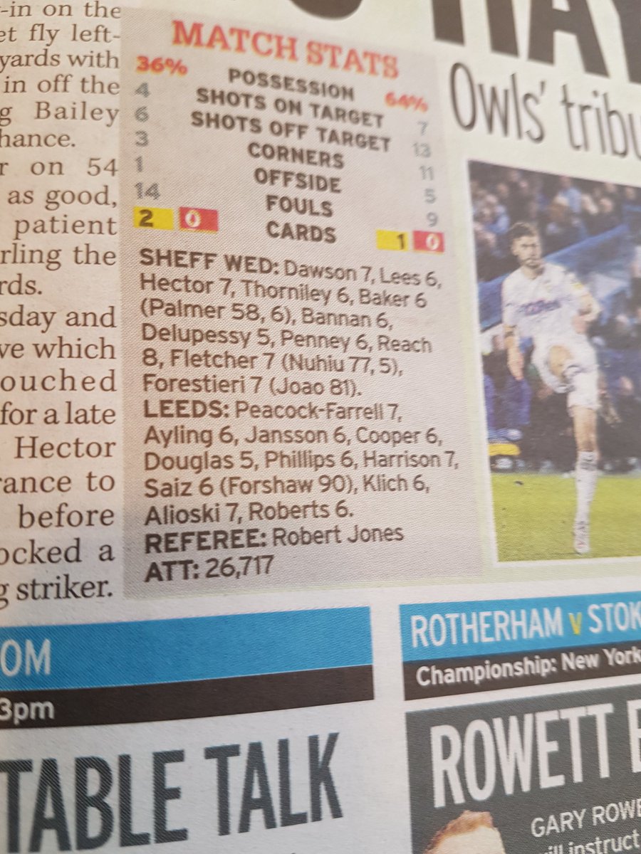 Alternativt har journalisten sittet og hørt kampen på "Radio Sheffield Wednesday" eller noe slikt, og tatt det som en objektiv dekning av det som foregikk på matta...