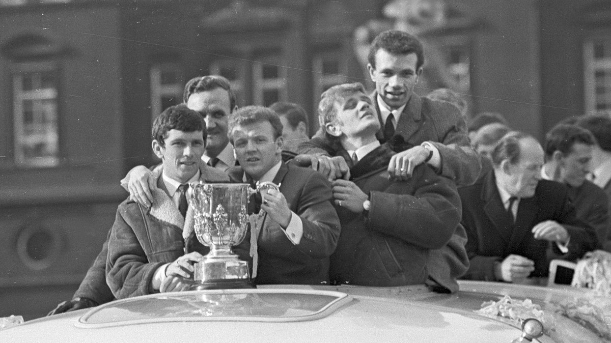 Giles and future Ireland boss Jack Charlton celebrate winning the FA Cup