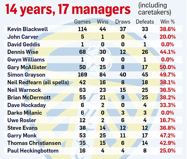 By my reckoning, 27 different managers have served Leeds since Don’s departure.