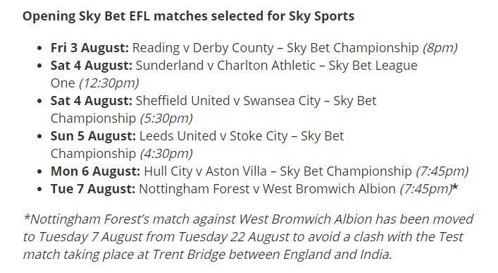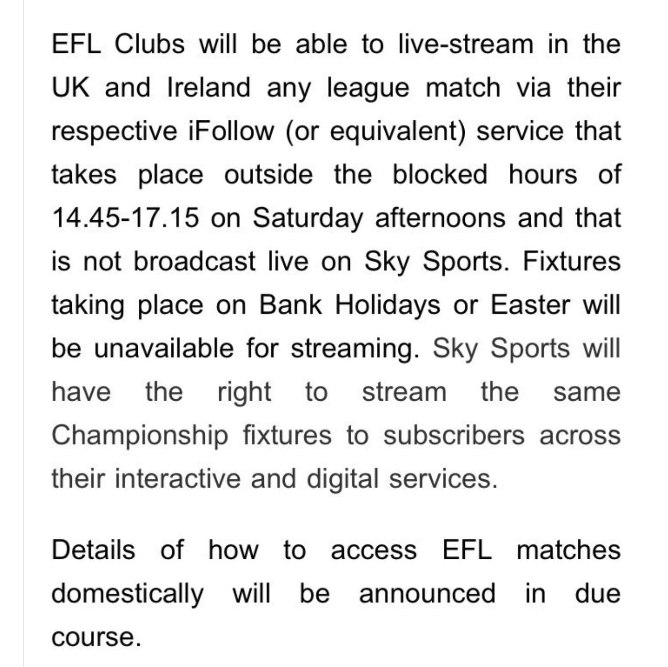 The EFL attempted to tackle the conflict of interests by agreeing a five-week notice period for any fixtures chosen for a live broadcast by Sky. In March, that period was reduced to three weeks for the penultimate weekend of the season - April 27 during the upcoming term - to “ensure the most appropriate matches are picked for broadcast.”