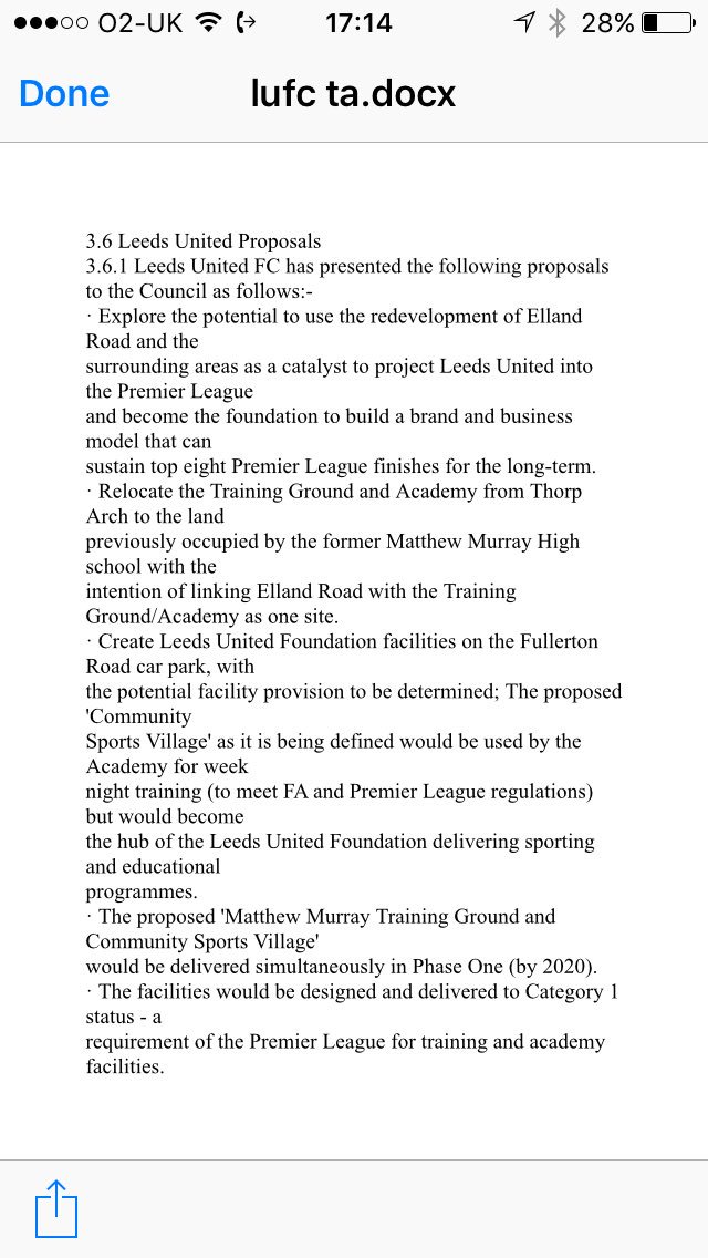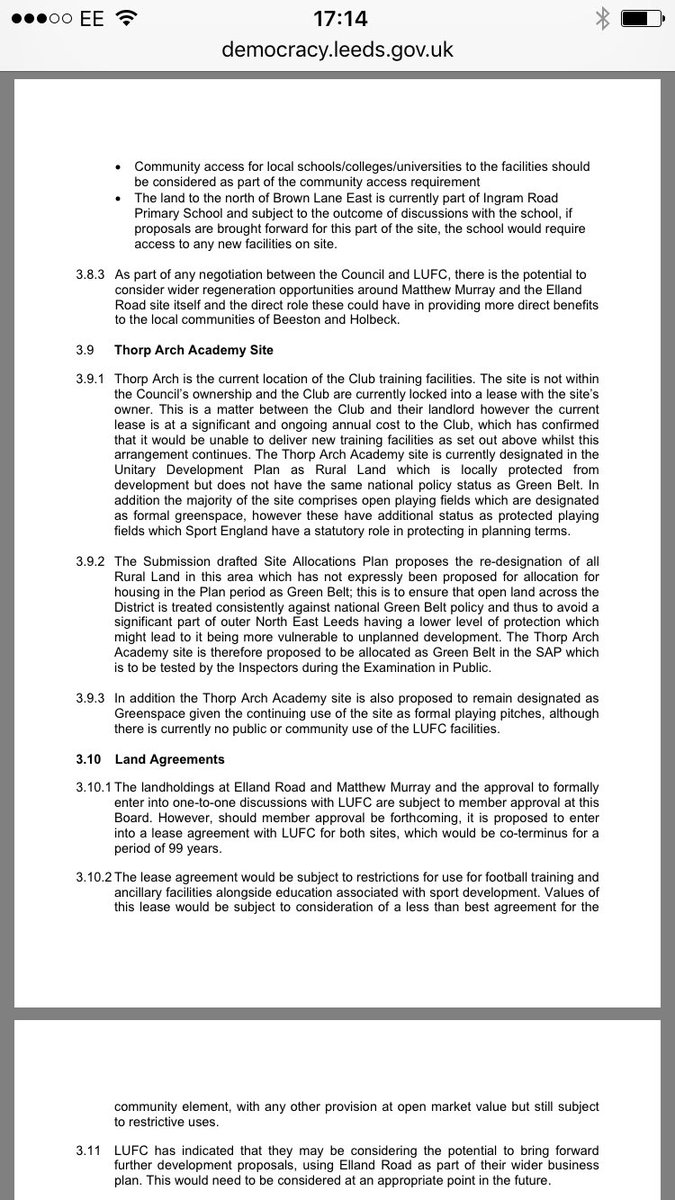 From the report, Leeds say they would have the break the TA lease agreement before finalising plans for a new training ground:
