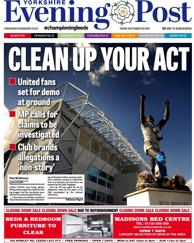 @LeedsNews front page tomorrow: @skypapers @hendopolis @suttonnick #yeplive #lufc