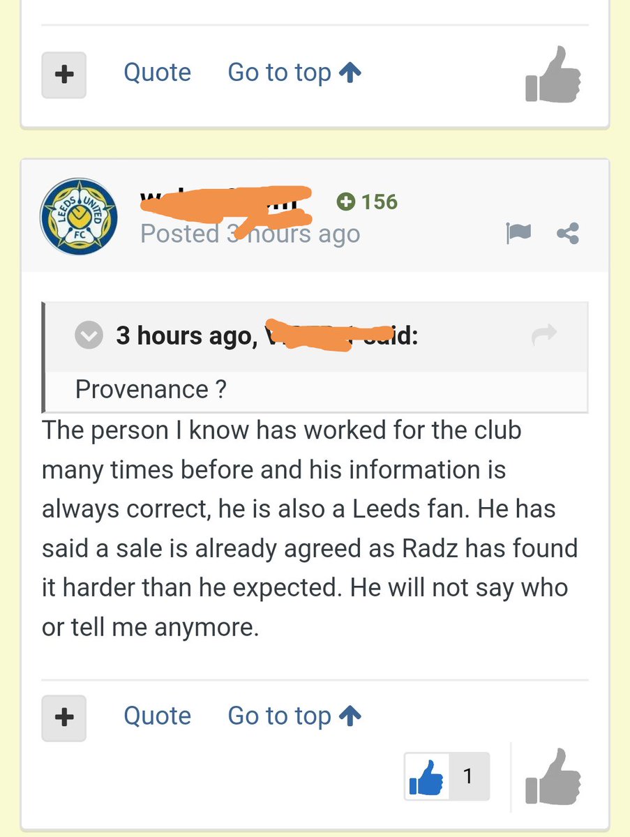Det legges også ned store ressurser i arbeidet med å planlegge et stort nytt treningsanlegg i umiddelbar nærhet til Elland Road - tror ikke han hadde gjort det om ikke han hadde et litt lengre investerings-perspektiv. Men at et ferdigstilt treningsanlegg -  sammen med tilbakekjøpet av Elland Road - gjør klubben mer attraktiv for salg om en tid - er det liten tvil om. Tror det er mer sannsynlig at R finner noen penger i Dubai eller et annet sted som kommer inn som partner. Skal man skape de virkelig store verdiene trengs det også sportslige resultater - heldigvis for oss supportere 8)