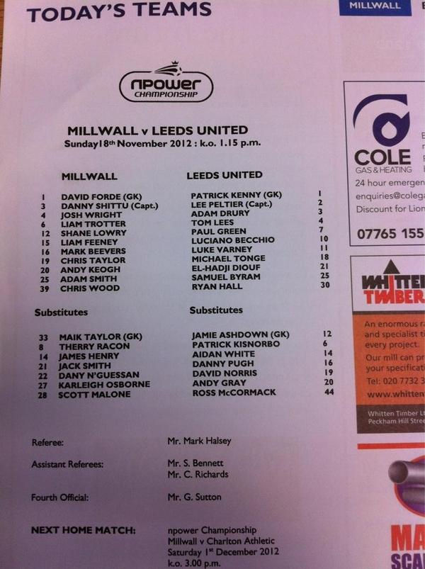#lufc team: Kenny Peltier Lees Green Drury Hall Tonge Byram Diouf Varney Becchio SUBS: Ashdown Kisnorbo White Norris Gray Pugh MCCORMACK