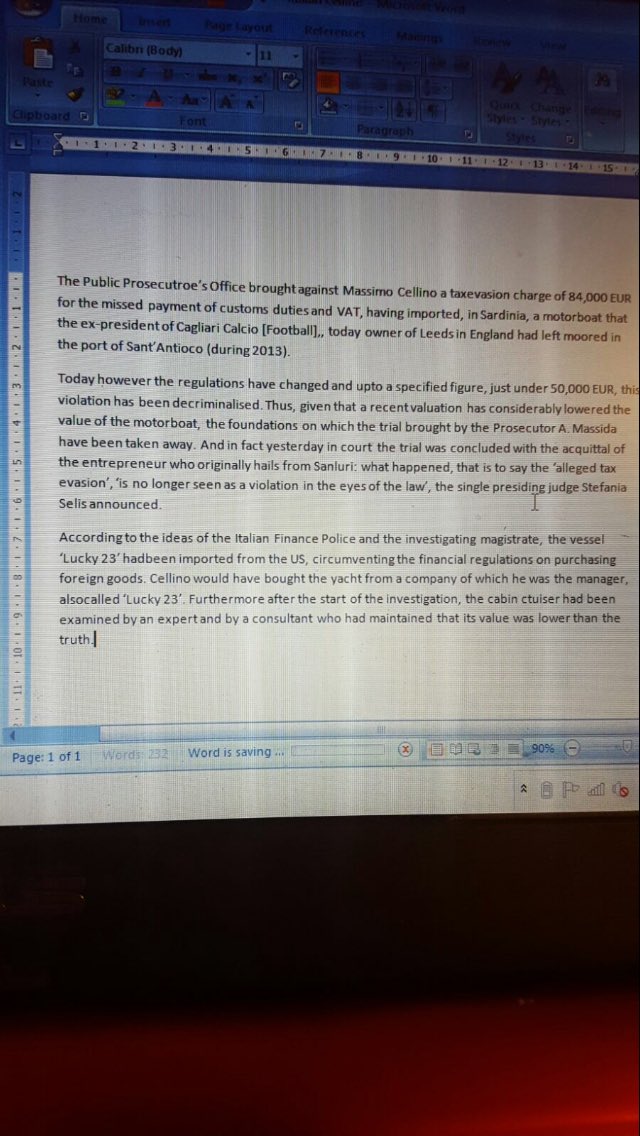 Been sent an article from Italian press which appears to say Massimo Cellino has been cleared of wrongdoing in the Lucky 23 yacht case: