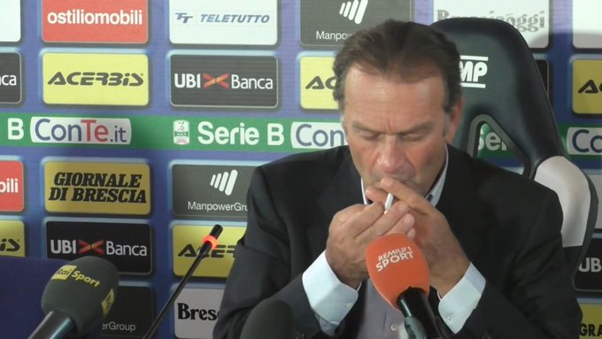 Halfway through Massimo Cellino's announcement that he'll be taking over @BresciaOfficial, he pulls out a cigarette