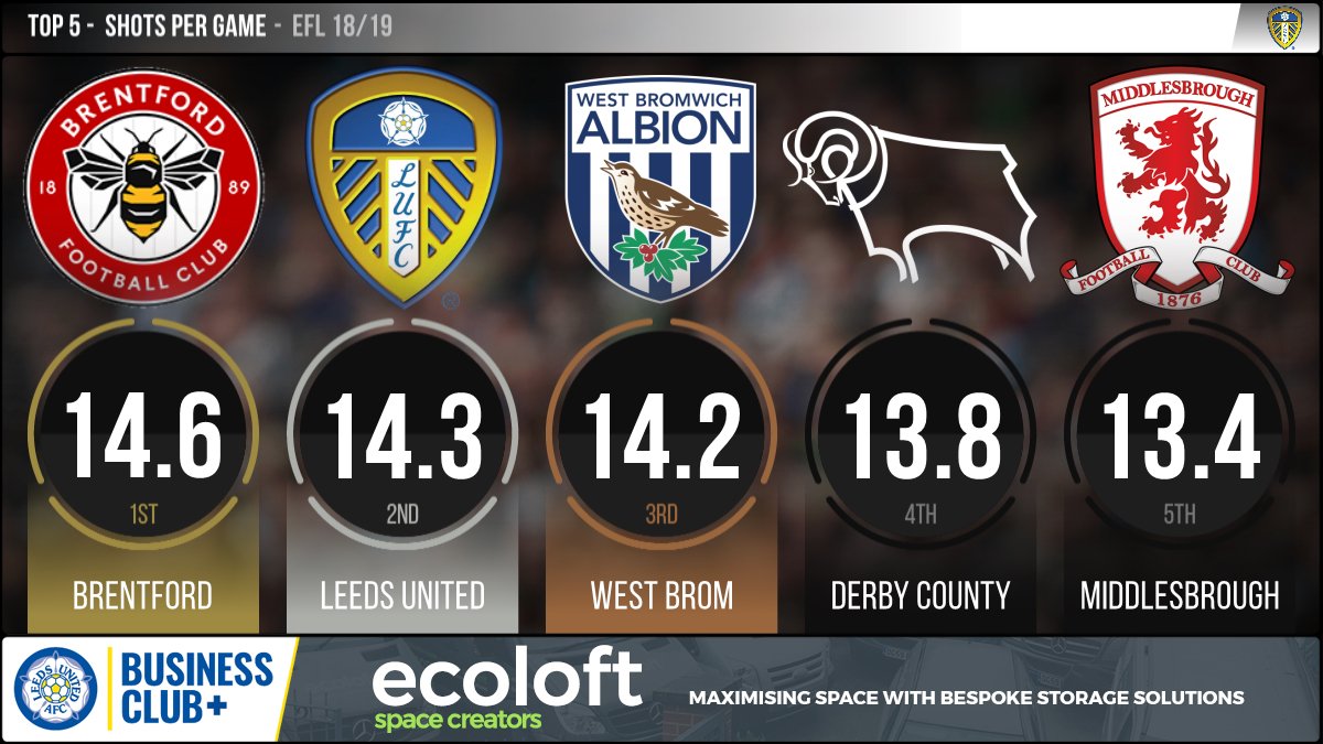 We take a look at the teams who have made the most shots per game in the @SkyBetChamp so far this season, with #LUFC sitting behind Brentford with 14.3 per game. #EFL #MOT