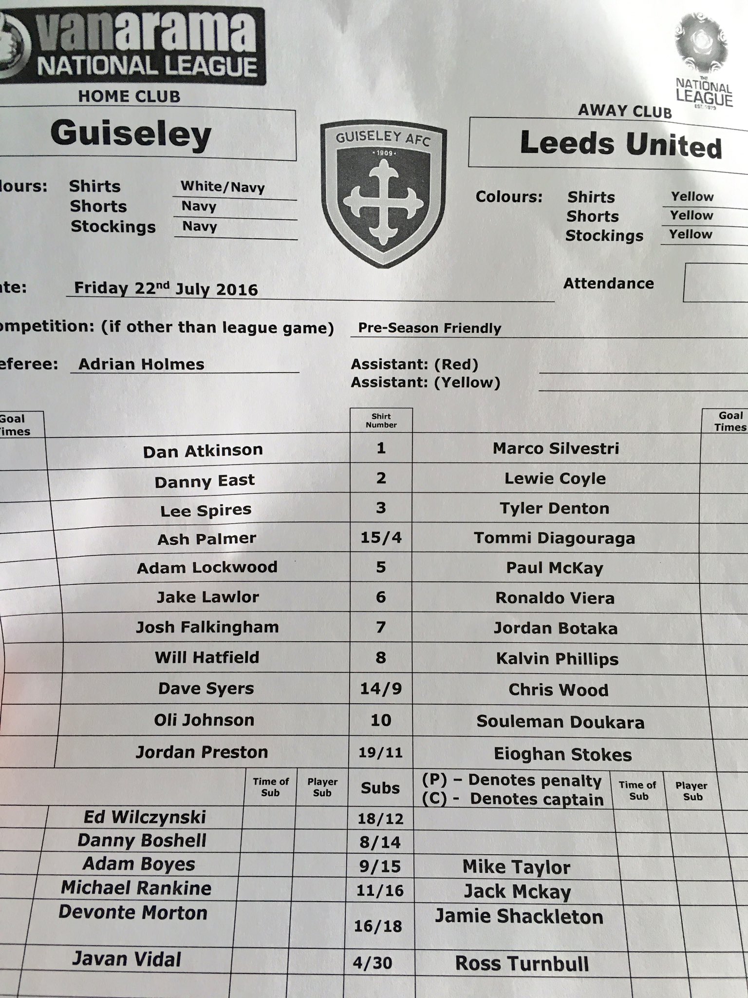 #lufc v Guiseley: Silvestri, Coyle, P McKay, Diagouraga, Denton, Phillips, Vieira, Botaka, Stokes, Doukara, Wood.