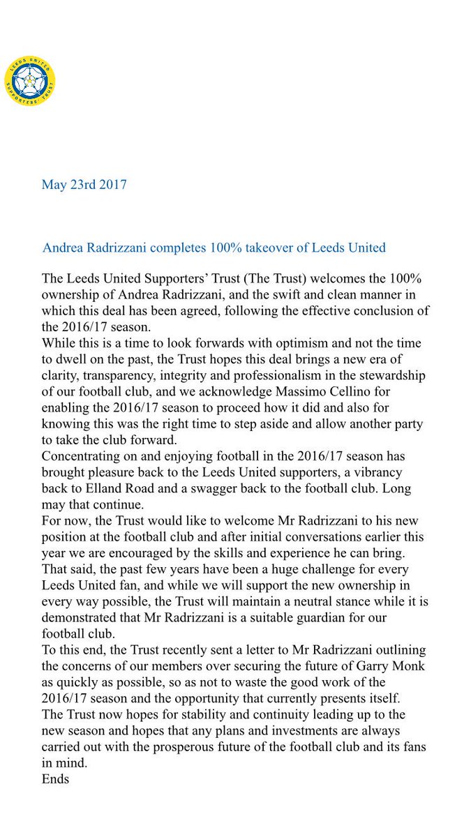 Leeds United Supporte's Trust offentliggjorde denne i kveld: