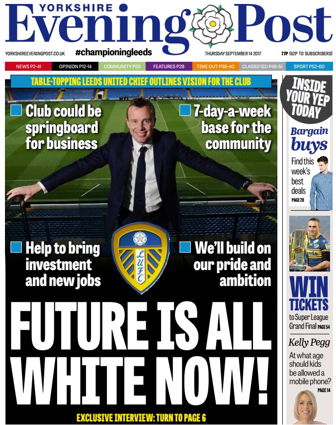 For years it has been said that Elland Road has potential, and he’s right that re-engaging a “disillusioned” fan base has to be a priority (this year’s ticket sales show that there has been a good stride forward there). Now he says, it’s time to take that strong foundation and work with Leeds and the business community to explore its wider potential. The idea of the club being used as a “thriving asset to the community seven days a week” and for it to be a “catalyst enabler” for fast-growing technology businesses may not be as exciting as a 5-0 win but it should be roundly welcomed so that we can see something else growing around the ground other than weeds.