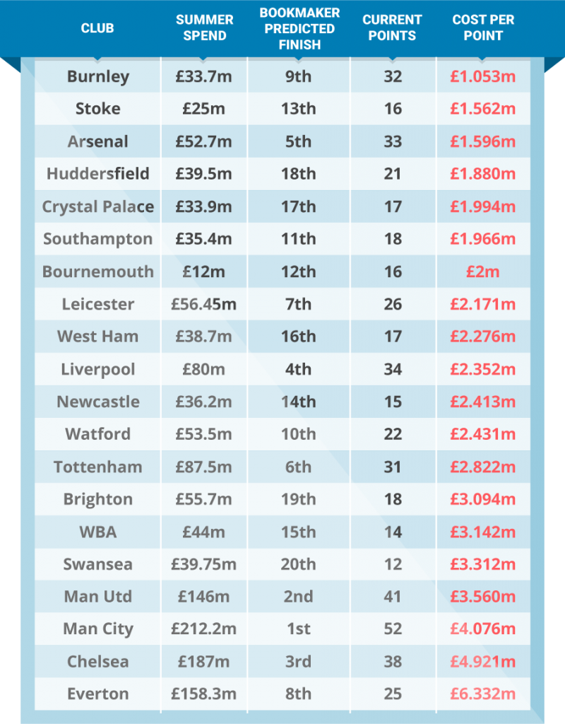 Kolonne en på Bournemouth må jo være feil, skal sikkert være 32 mill, hvis 12 er riktig er de jo på topp..