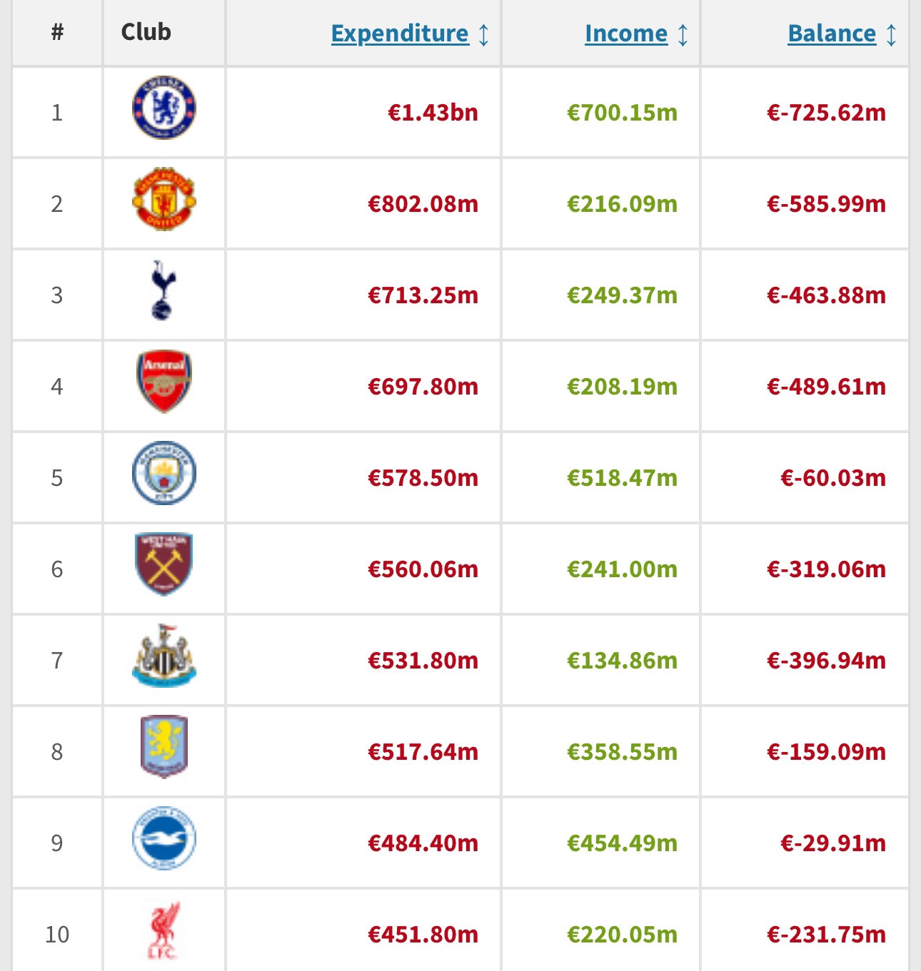 Men nettsiden Transfermarkts liste over høyest nettoforbruk i januar viser at bare ett lag på verdensbasis virkelig har investert.