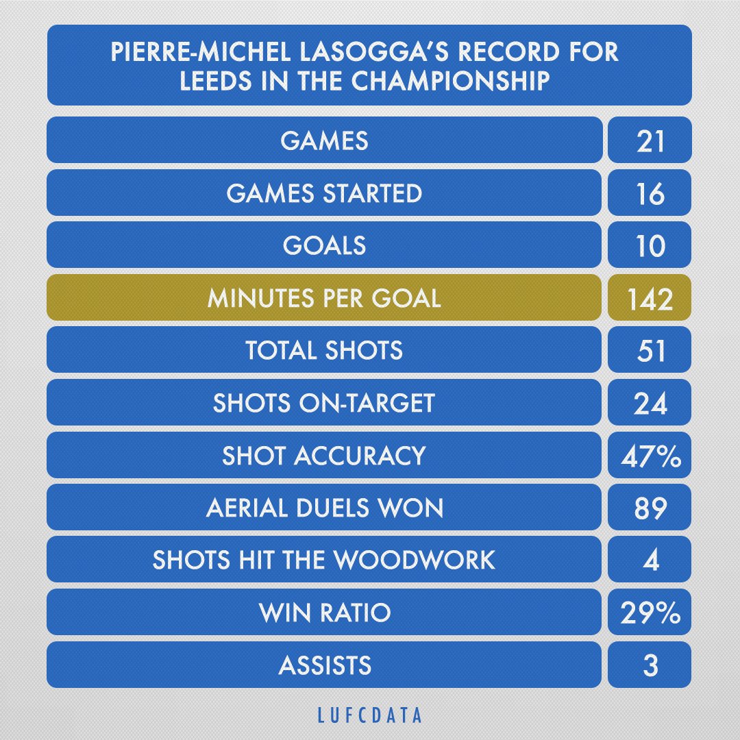 Here's a stat for you...Pierre-Michel Lasogga has hit the woodwork FOUR times in the @SkyBetChamp this season, more than any other player. #LUFC
