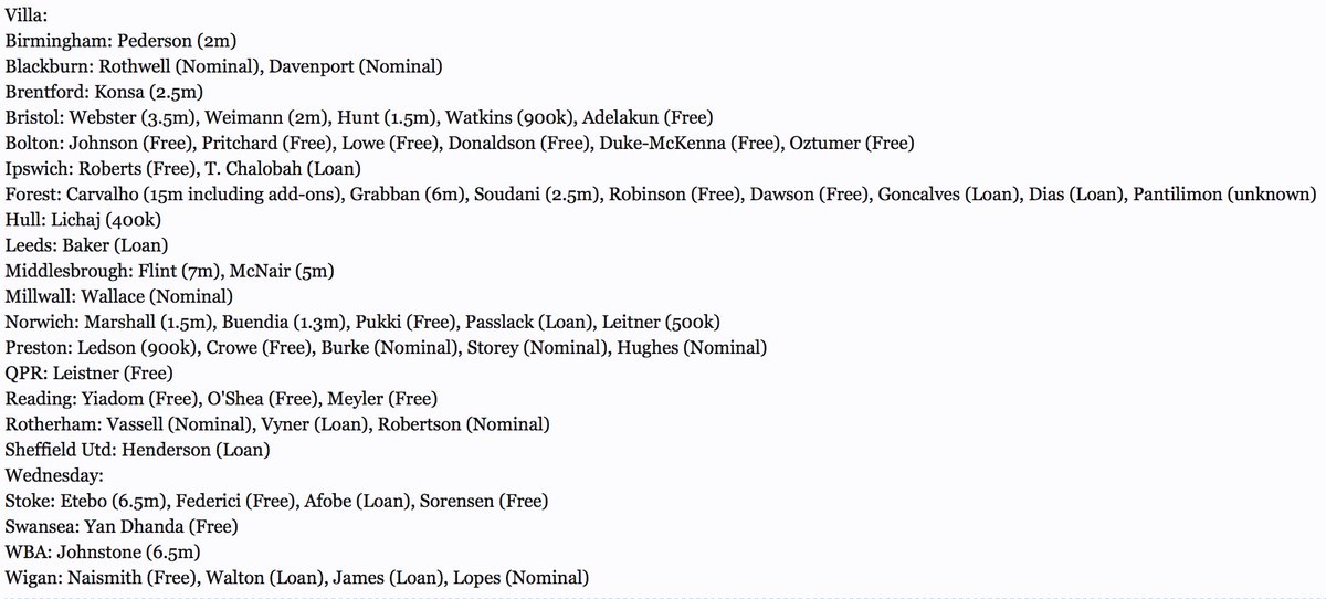 Joao Carvalho (Benfica), Diogo Goncalves (Lån fra Benfica), Michael Dawson (Hull City), Gil Bastiao Dias (Lån fra Monaco), Hillal Soudani (Dinamo Zagreb), Jack Robinson (QPR)