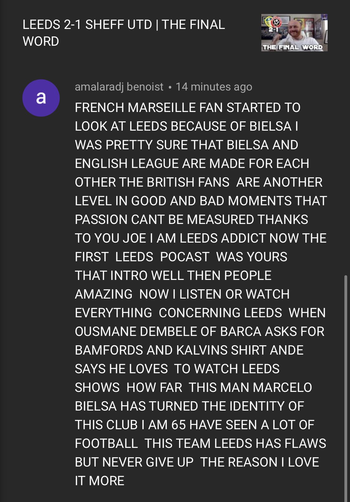 "But you also have to understand that Leeds United is bigger than Marcelo Bielsa. If one day, for one for whatever reason, we had to split up with Marcelo, that wouldn't change our goal, which is one day put Leeds back to where they were, so that they can once again play in the champions."