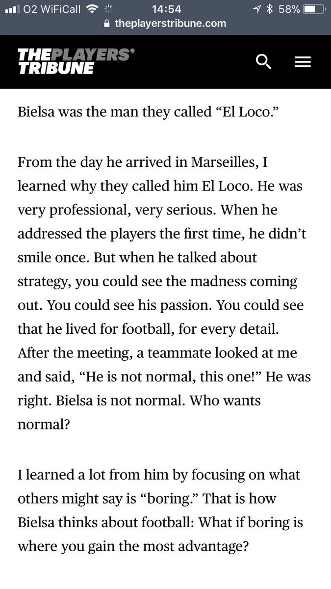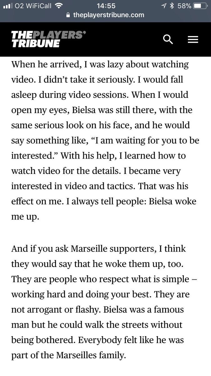 5- “The fans will be able to discover a real passionate, who loves football deeply. He asks a lot of his players, high pressing, racing rehearsals, great intensity with and without ball. It’s spectacular and beautiful to see. But you have to be able to support that for the players. Either you join, or it’s complicated. Players can only progress alongside Bielsa, in my opinion.”