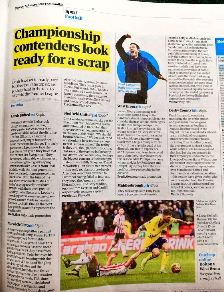 Våre problemer, eller for den saks skyld muligheter, er ikke større enn de andre lagenes. Alle sliter med sitt: ups-and-downs, skader, teite dommere, har det generelt tøft. Alle kamper er jevne, vi har fortsatt kun én kamp hvor vi ikke har kontrollert ballinnehavet. Stort sett vil jeg si at den eneste mangelen er at vi ennå ikke har tatt ut det maksimale av det gode spillet vårt, altså som Bielsa sier, ikke omsetter nok av sjansene til mål. Og det er nå sånn en gang, i det lange løp vinner laget som har ballen mest.