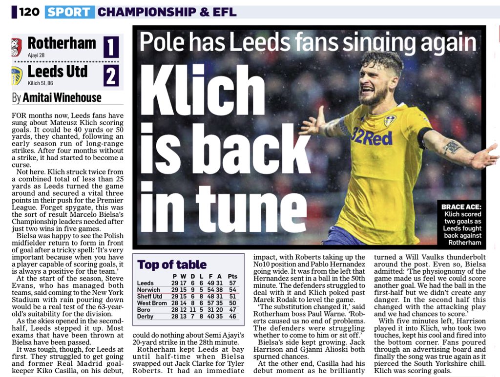 Saw someone tweet recently saying Klich’s goals had dried up as a result of Saiz not being there to create the space and attract defenders to him instead.