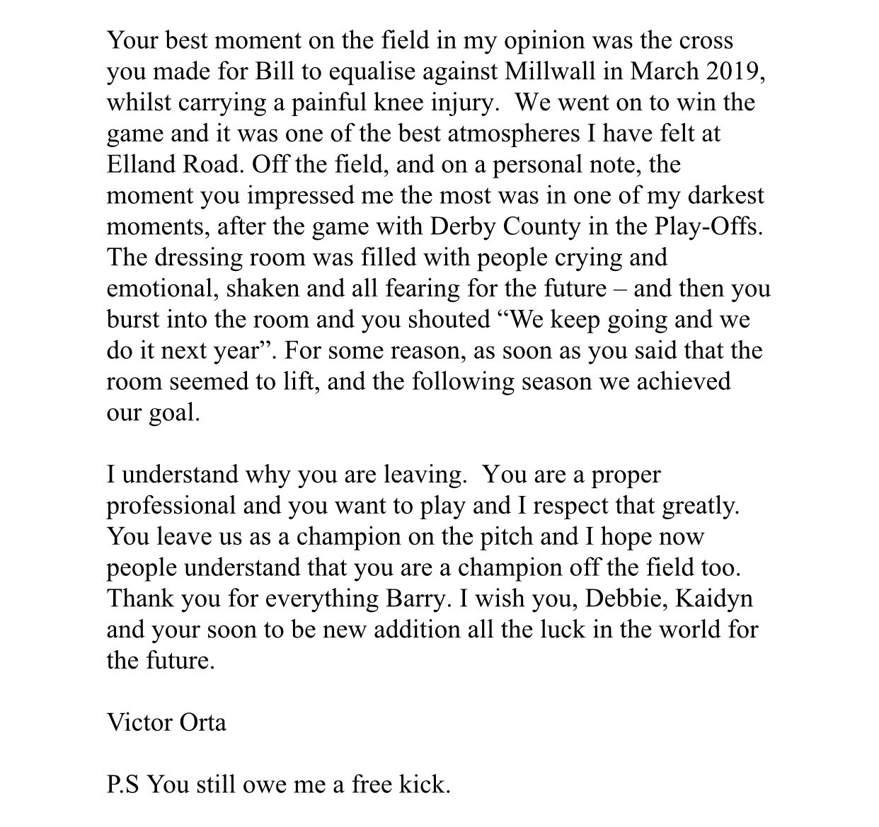 Douglas was a popular player at Leeds. Victor Orta has written an open letter to him. This part stood out:
