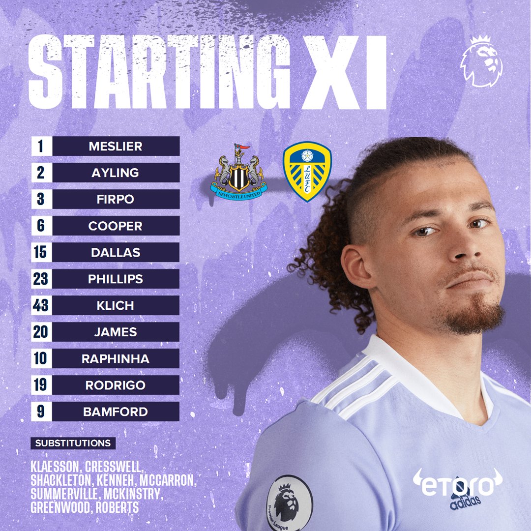 Meslier - Ayling, Phillips, Cooper - Dallas, Klich, Firpo - Raphinha, Rodrigo, James - Bamford