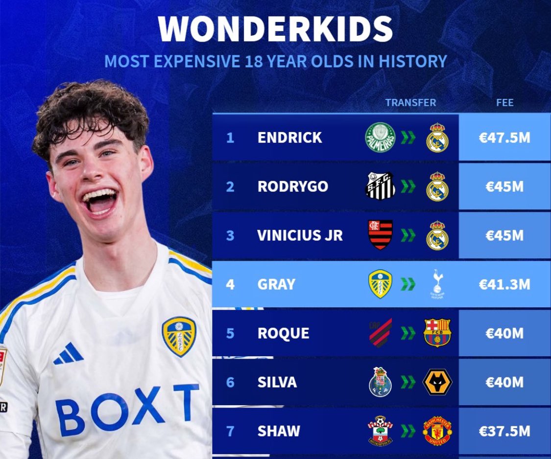 Totalverdien på avtalen er høy. Utvilsomt. Fjerde største for en 18-åring. Michael fra TSB var gjest i Spurspodcast og der fikk han vite at mange Spursfans heller ville sett pengene brukt på spillere som Eze, enn Gray og Bergvall. Så får heller ikke Leeds hele den summen (Rodon trekkes fra) og det spørs hvor mye av dette som er knyttet opp mot at Spurs har suksess. For alt vi vet kan det ligge ting der som først betales når Tottenham vinner noe og da blir det aldri betaling... Man må nok til neste regnskap (eventuelt året etter det igjen om dette blir på 2024/25-regnskapet) før vi vet hvordan avtalen faktisk ser ut. Spurs betaler ikke £40 mill og jeg er spent på hvor mye Leeds faktisk ender med å motta i ren cash, om vi ser bort fra det som er tiltenkt å imøtekomme FFP/PSR. Når de selger han videre for langt mer, så er de (maksimalt) £25-30 millioner i kontanter for småpenger å regne - for en PL-klubb. Vi solgte vel ikke Ferdinand egentlig for den summen det ble oppgitt i media, da han gikk til de røde for snart et kvart århundre sida. Derfor er jeg litt skeptisk til disse summene. Regnskap og cash flow er ofte to helt forskjellige ting. Enda verre er nok mye av pengene som kommer rett i sluket av Ortas feilslåtte overganger, herunder JKA.