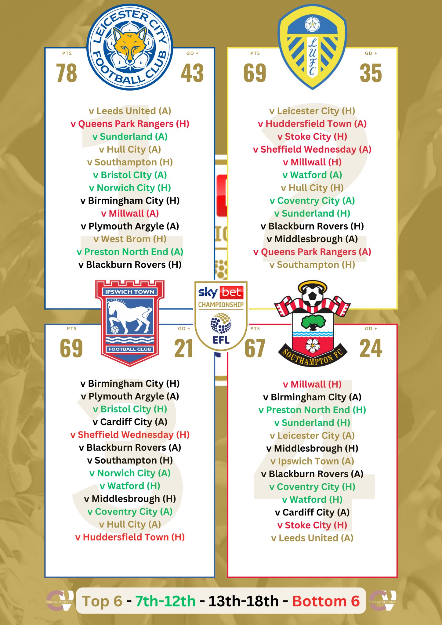 #SaintsFC have the hardest fixtures, with #itfc having the easiest. Whilst #lcfc are running away with it, #lufc have easier fixtures and good form.