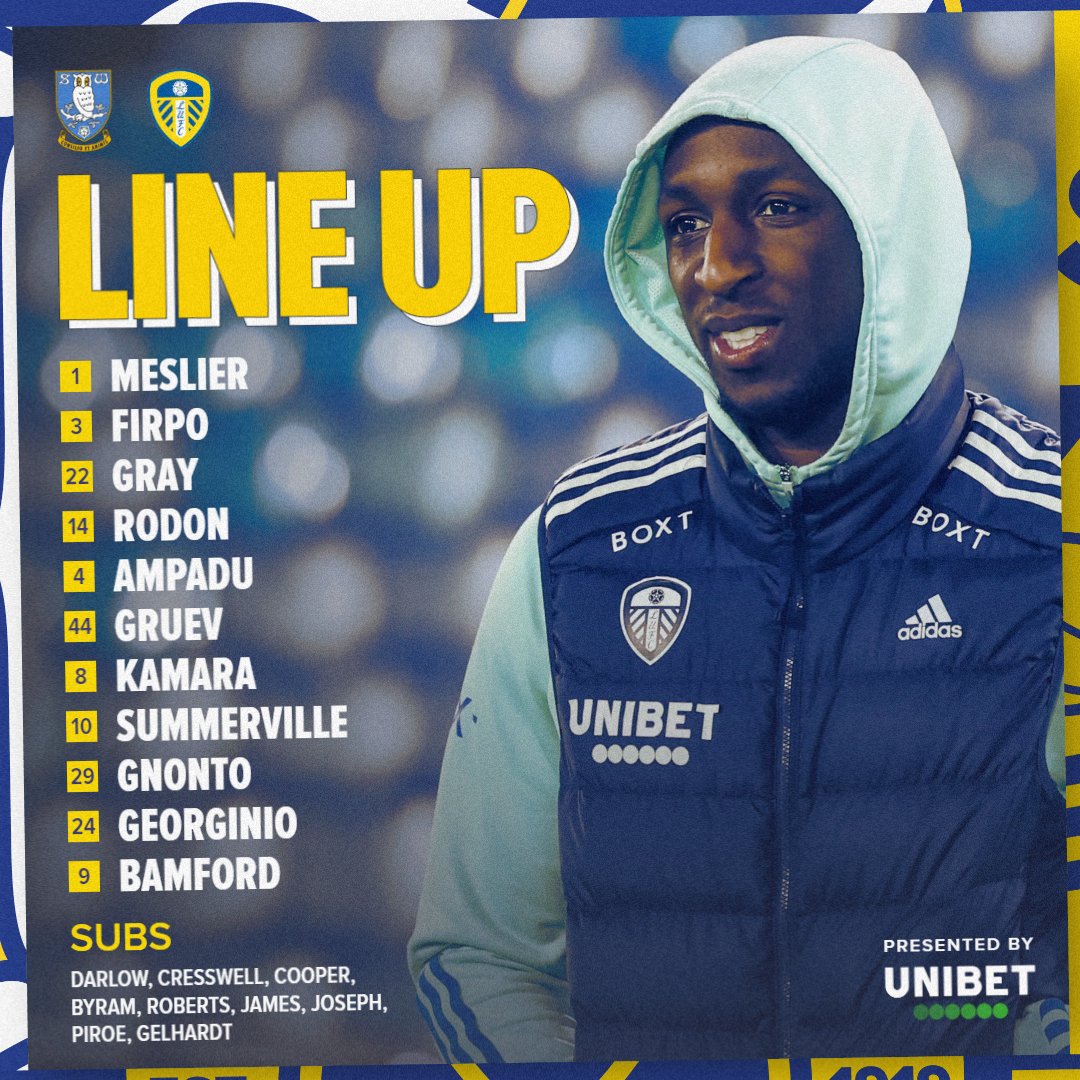 Meslier - Roberts, Rodon, Cooper, Byram - Ampadu, Gruev - James, Gray, Gnonto - Joseph