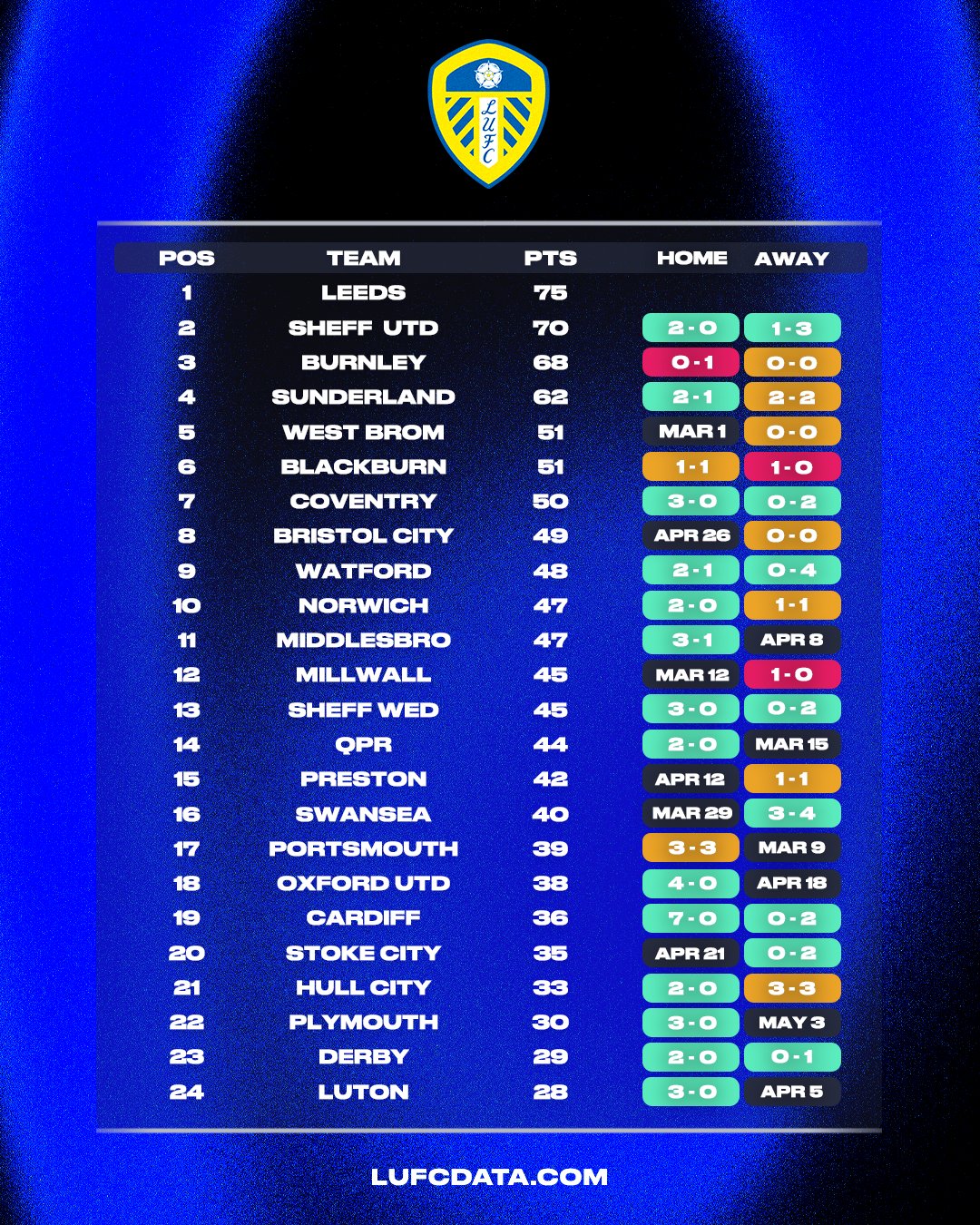 📊 A visual of Leeds' Championship results this season by current league position and our upcoming fixtures.