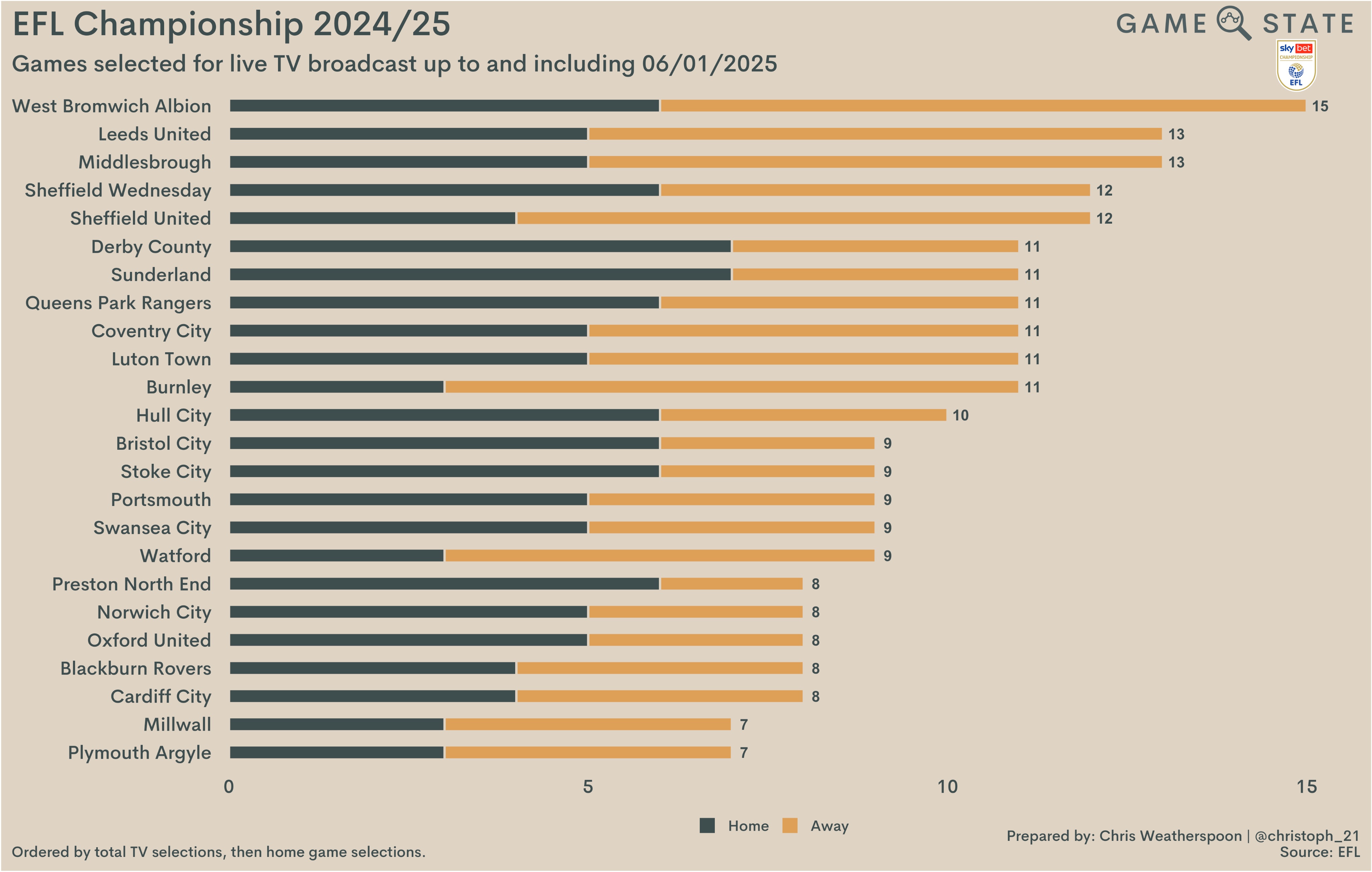 🔢Breakdown of TV fixtures to 6 Jan 2025: