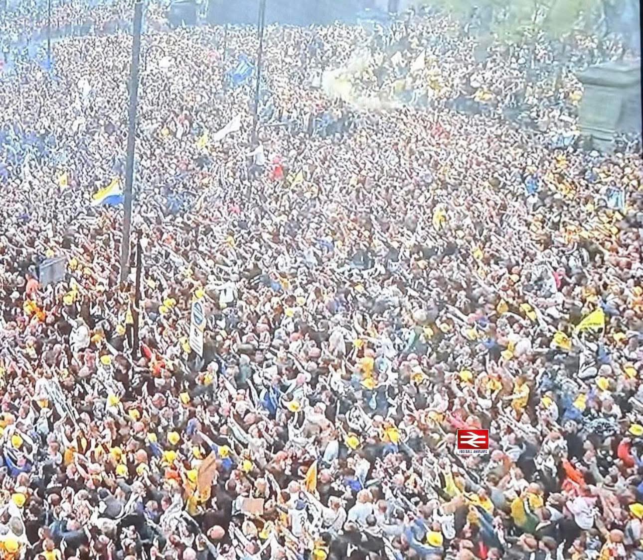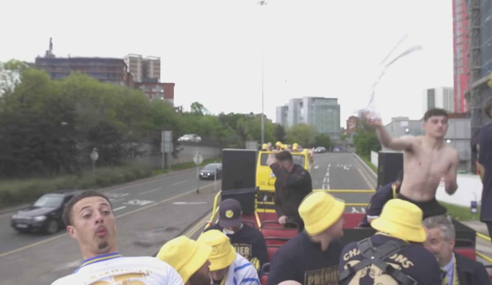 💨 Thousands of fans swarm onto The Headrow to follow the bus!