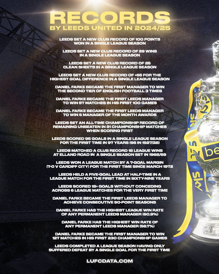RECORDS: So proud to present the key records set by Leeds United across the club's title-winning 2024/25 season. 🏆📖