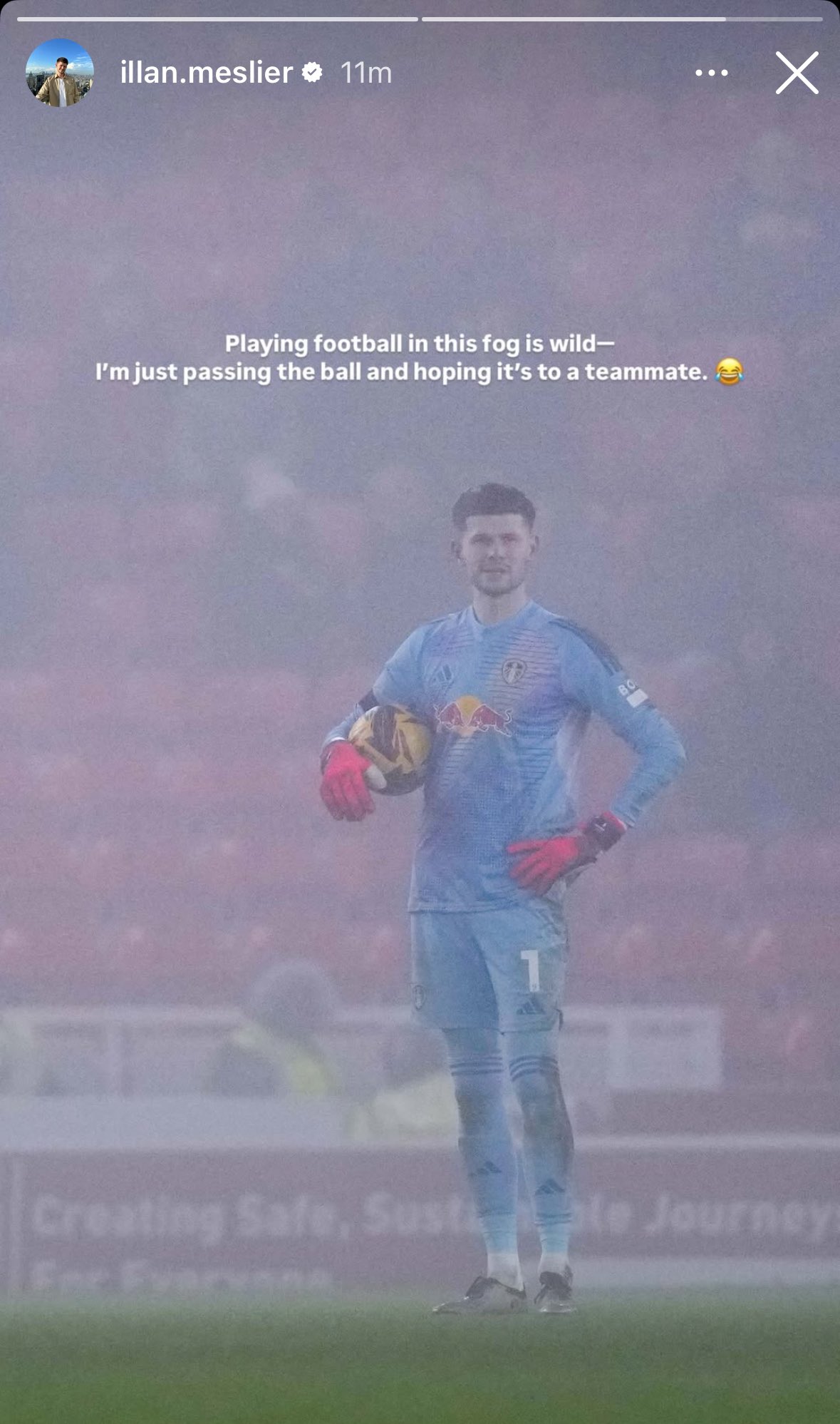 «Just passing the ball and hoping it's to a teammate»... Tåke eller ikke - En helt vanlig dag på jobben for Meslier, med andre ord.