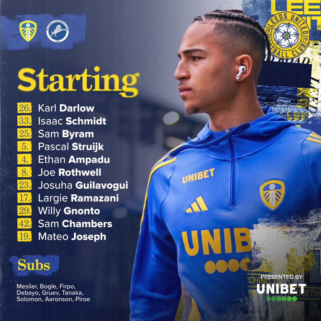 Darlow - Byram, Rodon, Struijk, Schmidt - Gruev, Ampadu - Gnonto, Rothwell, Ramazani - Joseph