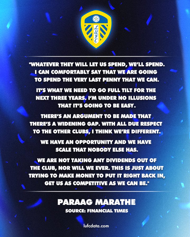 The current loss limit for clubs in the EFL across three accounting periods is £41.5 million, recently increased from £39 million. Leeds' case is somewhat different given they have only spent two of the last three years in the Championship and one in the Premier League, where the maximum loss threshold is higher.