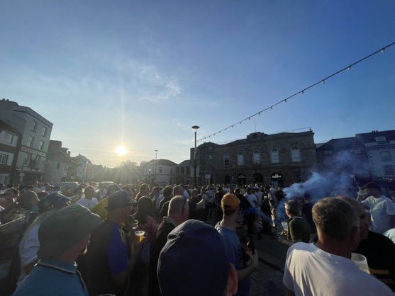 Mange deilige bilder av Leedsfans i Plymouth i går kveld.
