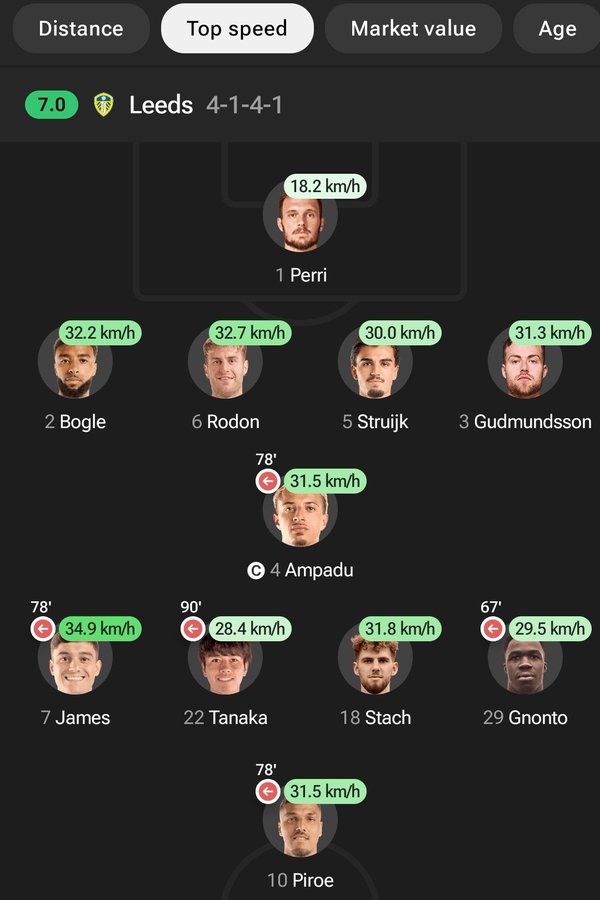 In terms of distance covered per player, four of the top five players on the Elland Road pitch were Leeds players. Anton Stach ran more than anyone, clocking up an impressive 11.7km as Leeds secured a win.