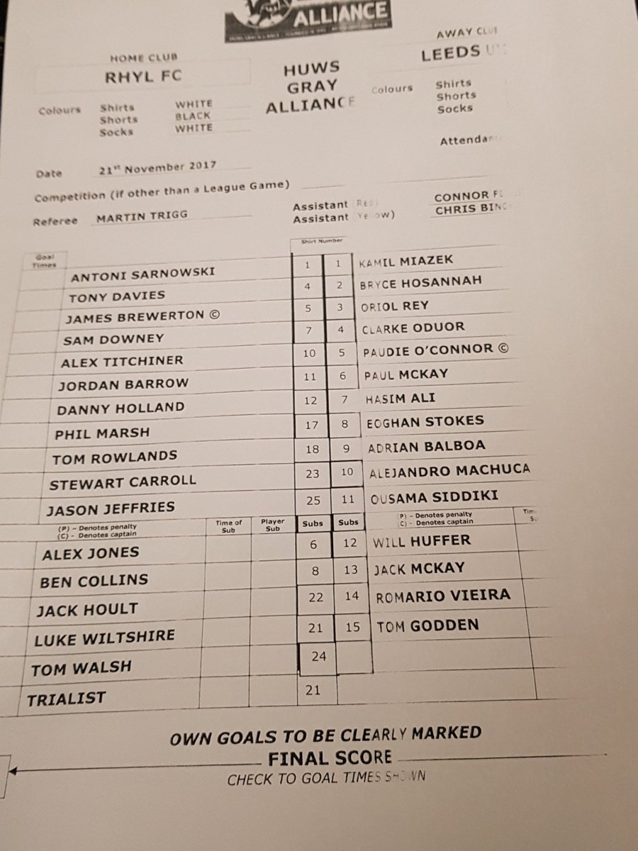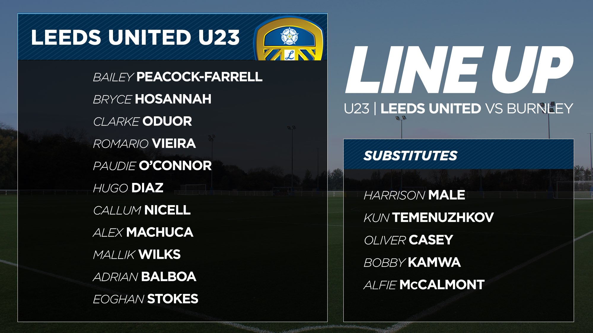 Leeds U-23s team v Forest (1.30pm): Male, Hosannah, Pearce, P McKay, O'Connor, Kitching, Rey, Romario Vieira, J McKay, Shackleton, Siddiki.  Subs: Huffer, Odour, Machuca, Balboa, Clarke. #lufc