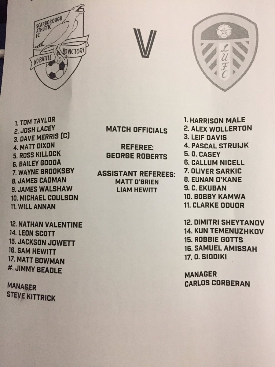 The Leeds side will mainly be made up by the U23 squad with some senior players included.