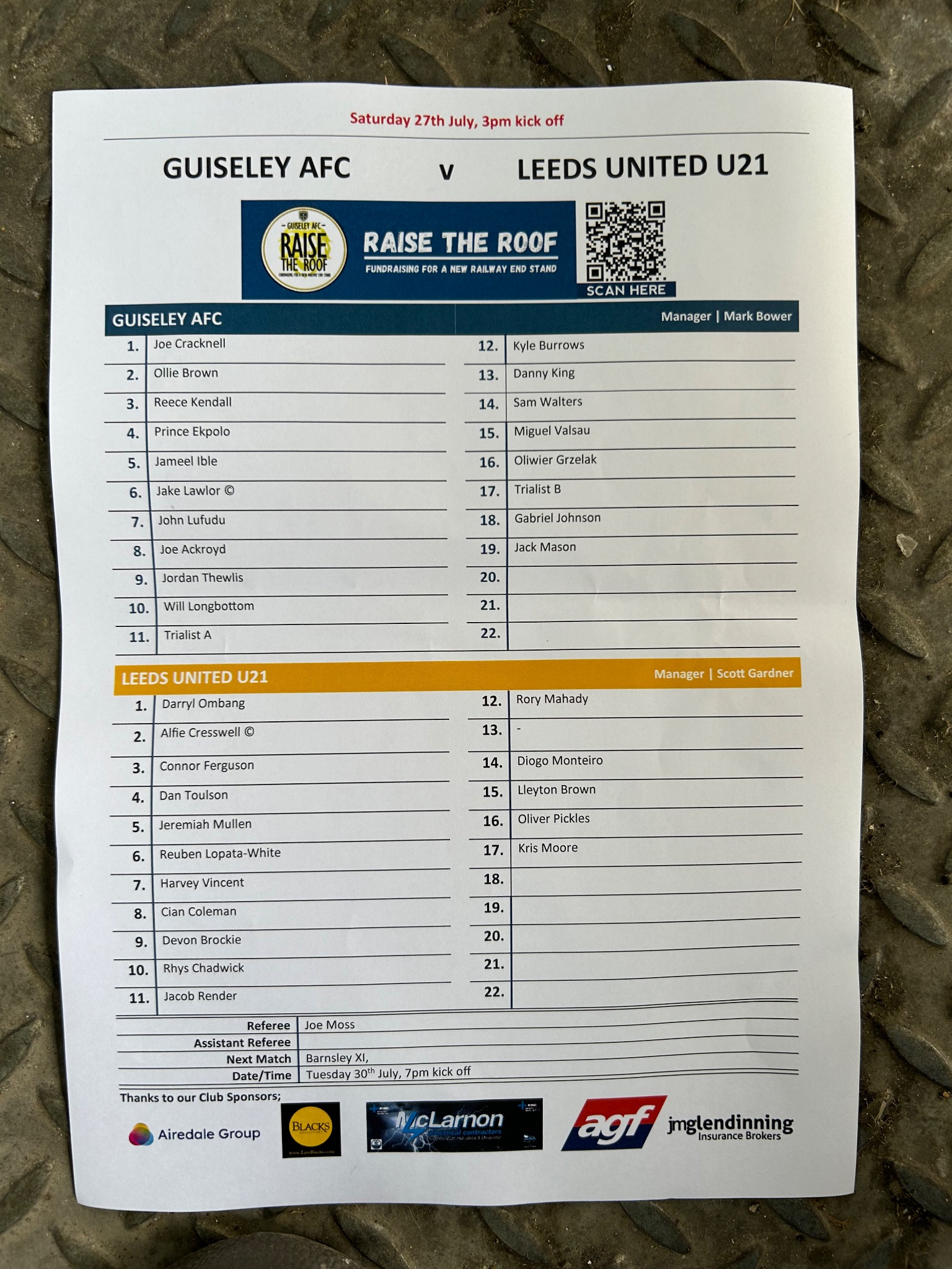 FULL TIME! A good afternoon's exercise for both sides as the Lions come out on top, a full time scoreline of Guiseley AFC 1-0 Leeds United U21s, and a safe trip home to all the visiting supporters players and staff and best of luck for the upcoming season #GAFC #GuiseleyTogether