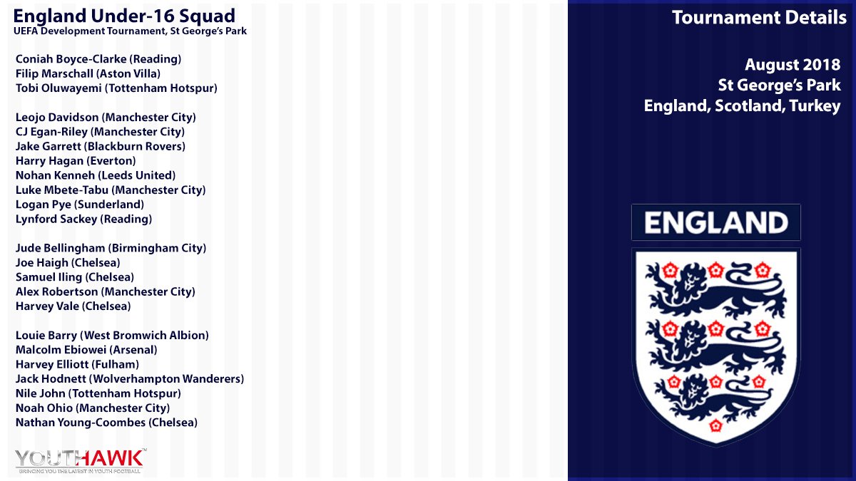 #ENGU16 are in action against Scotland this afternoon in their UEFA Development Tournament opener. Here's the squad picked by Kevin Betsy.