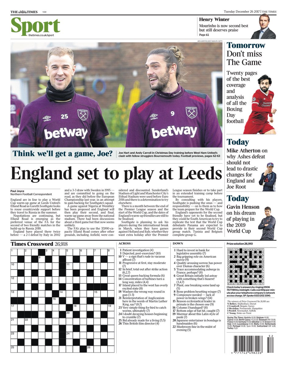 The Times are reporting that @England are set to play a World Cup warm-up match at Elland Road. It would be the first England match to be played at @LUFC since March 2002 vs. Italy. #LUFC #MOT